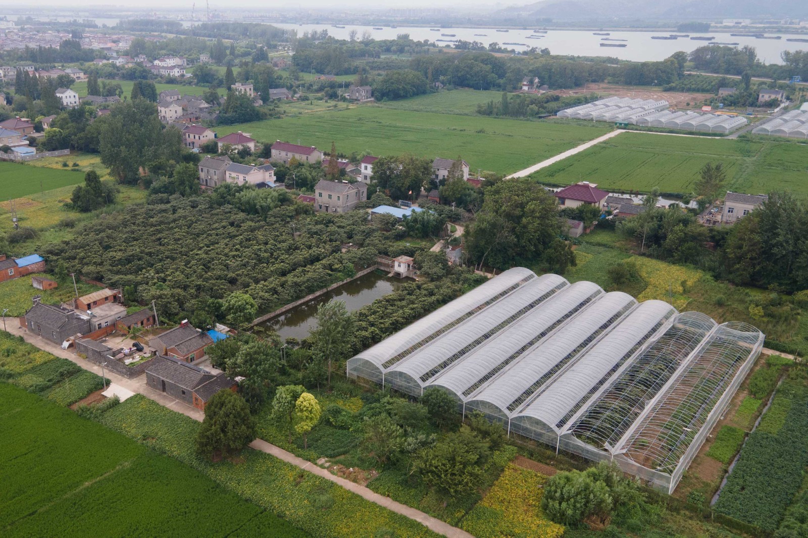 在立新东㴭圩特田产业区内,不仅是枇杷,葡萄也是远近闻名。“纪福葡萄”被列为国家无公害农产品,出产的阳光玫瑰、晴王、妮娜女皇品种多次获评江苏省农产品水果评比金奖。同时引种小批量水果番茄、月露瓜、红颜草莓、冰糖玉米、红玉西瓜等特色水果,周边农田大面积种植新品生态水稻。形成了小而精,特而优的现代农业产业格局。