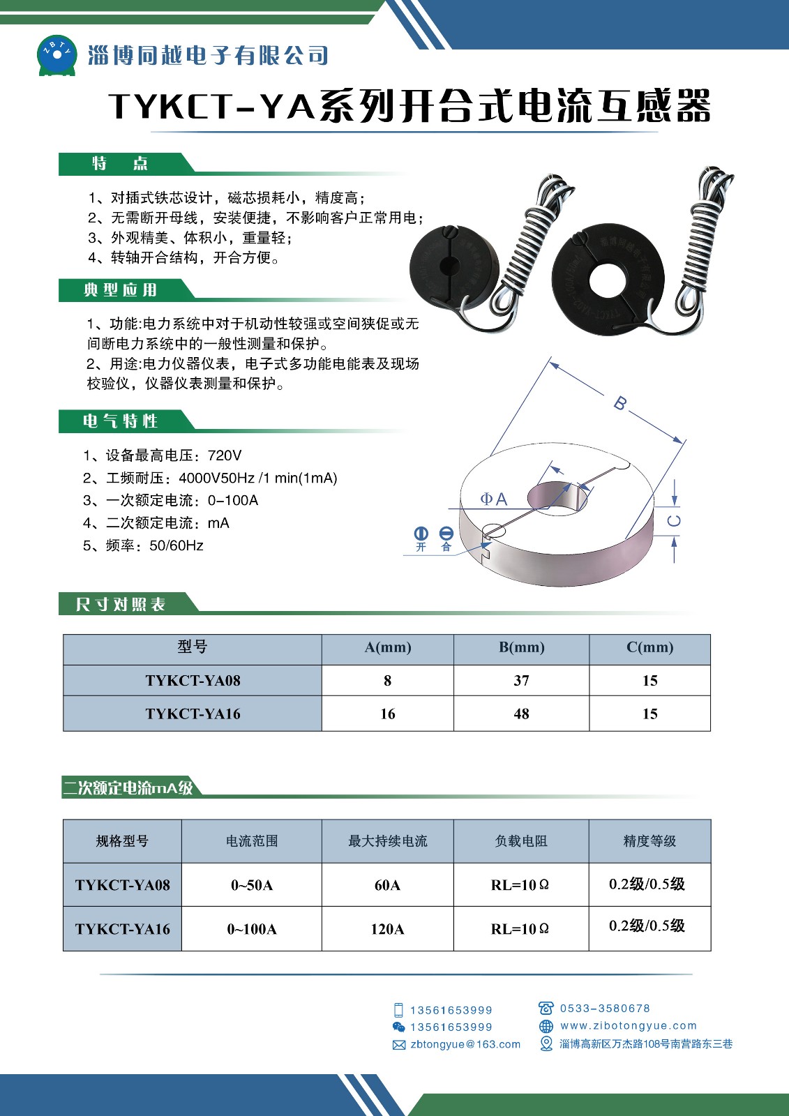 电抗器-互感器 > 电流互感器 > 开合式电流互感器TYKCT-YA