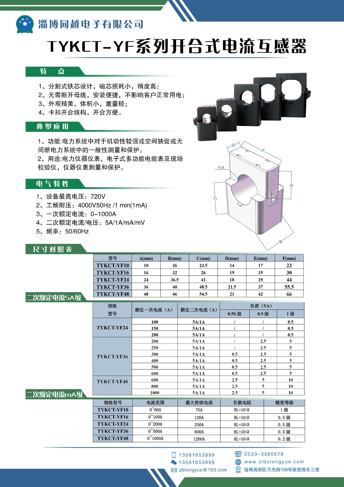 电抗器-互感器 > 电流互感器 > 开合式电流互感器TYKCT-YF