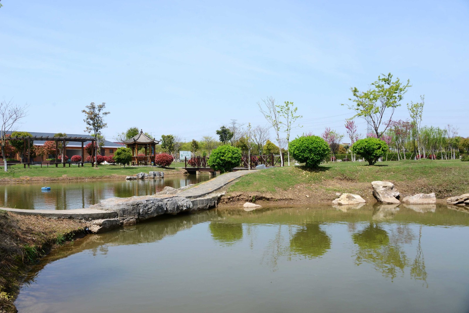 注重打造绿美村庄,绿化品种丰富多彩,绿化手法生态自然,整个村庄绿树环绕,四季有景,美不胜收,道路绿化绿树成荫、河道绿化水清岸美、乔灌结合错落有致、花团锦簇景色诱人、节点景观美轮美奂。